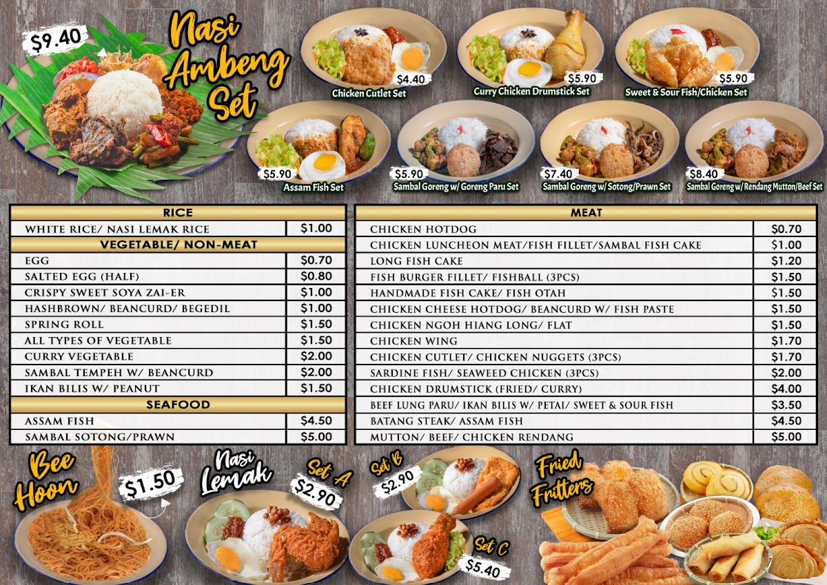 Chef Ibu's menu offers a delightful selection of flavorful dishes that truly showcase the essence of Southeast Asian cuisine. Each dish is thoughtfully crafted with authentic ingredients, and it’s clear that the restaurant prioritizes quality and tradition. Among the highlights, Fried Rice Chicken Wing stands out with its crispy chicken wings perfectly paired with aromatic fried rice, a hearty and satisfying option for any diner. Another popular choice is the Fried Rice Sambal Sotong, where the spicy sambal brings out the richness of the sotong (squid), making for a flavorful and bold dish. For a twist on classic comfort food, the Fried Rice Chicken Hotdog combines savory fried rice with juicy chicken hotdog, adding a fun and tasty twist to the traditional fried rice.